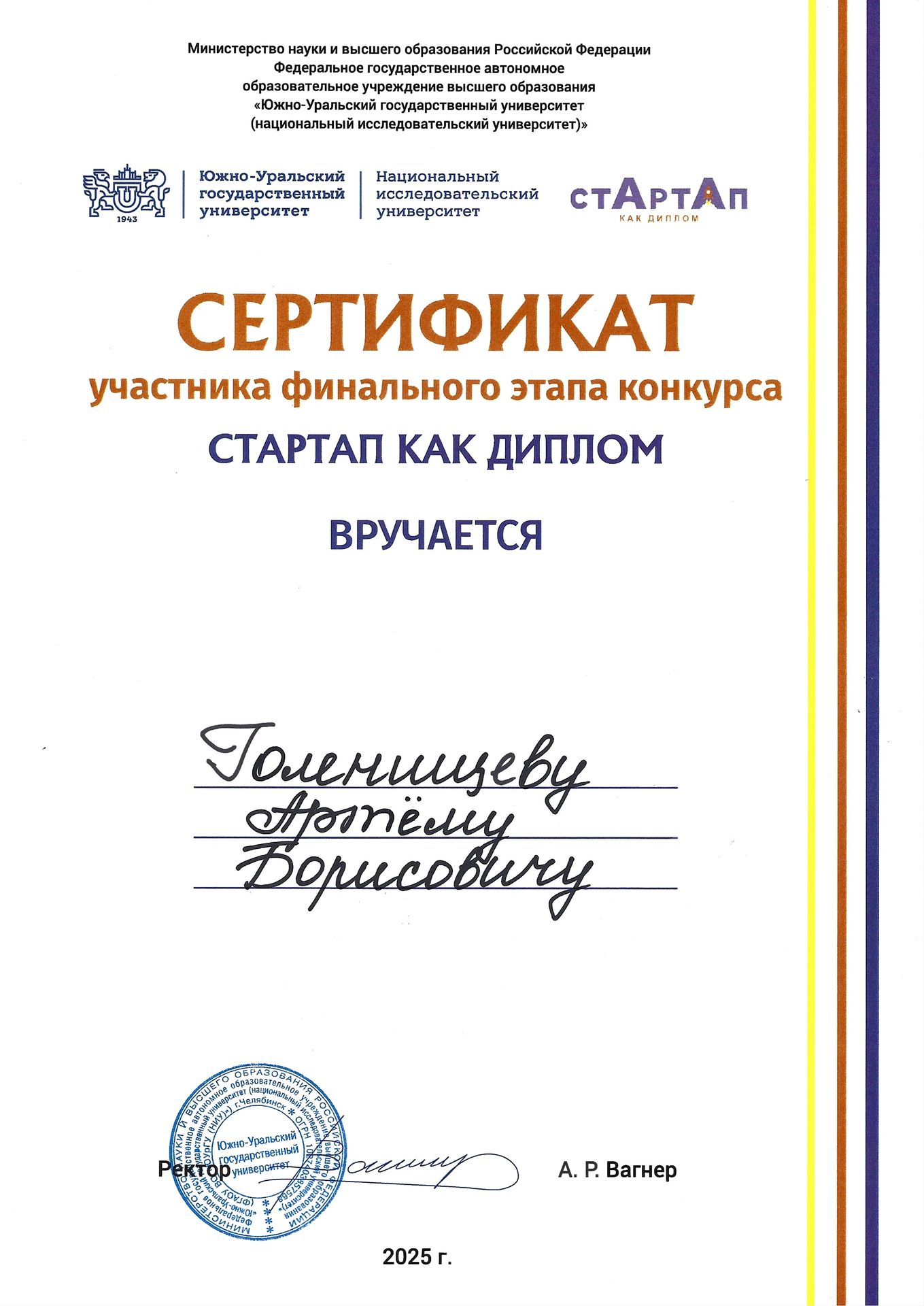Россия, Челябинск ⌚ Время работы: Пн-Пт 9:00-17:00 (GMT+5) ✉️ E-mail: golenischevms@gmail.com 📞 Телефон: +7 994 819 96 68